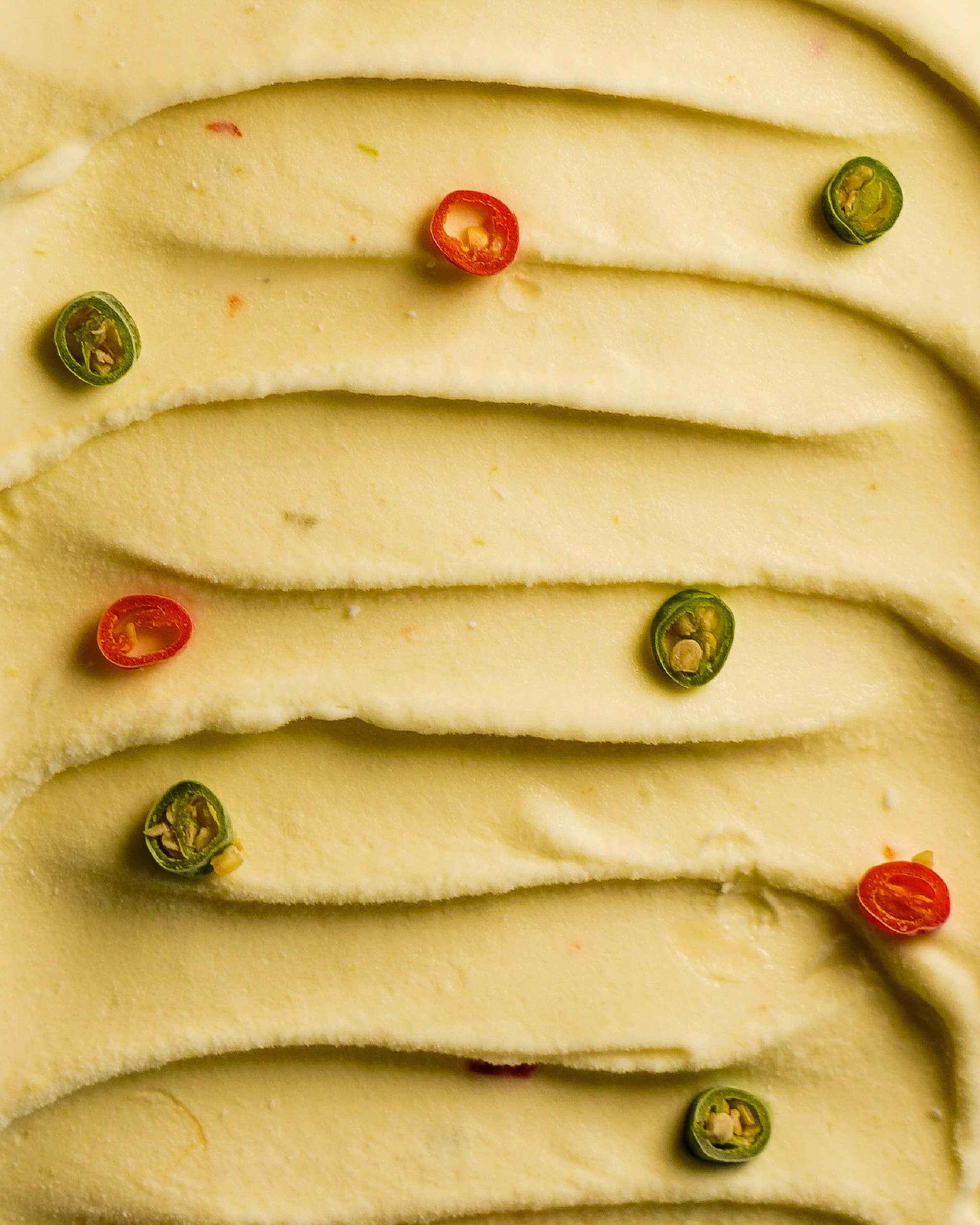 Tropical pineapple brings the sweetness, while green and red chilli padi add a slow-building heat that tingles without overwhelming. A hit of lime ties it all together with that bright, zesty kick. It's the kind of sorbet that keeps you guessing with every spoonful — sweet, spicy, tangy, repeat.